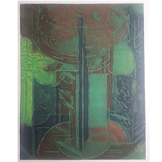 A lovely abstract work, typical of Norman Jaques abstract printmaking in the 1960s, unframed.
