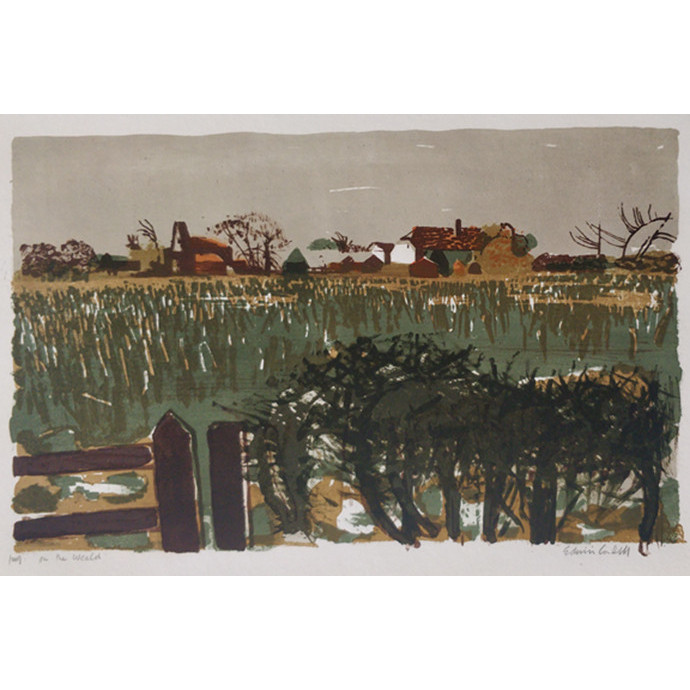 Edwin was a prolific painter in oils and watercolours, and took up etching when his health failed in the late 1960s. However, he found the greatest expression in lithography, where the combination of drawing; blocks of colour and visualising the build-up of colours layer by layer gave him the freedom to capture the spirit of his subjects.