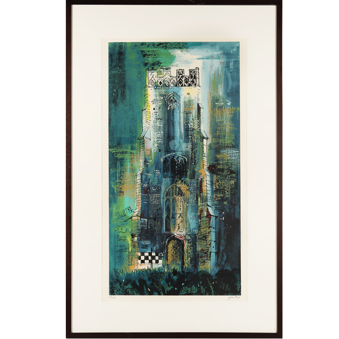 One of Piper’s most magnificent screenprints as illustrated on the front cover of Orde Levinson’s 2010 Catalogue Raisonee of ‘The Prints of John Piper’. This framed screenprint in colours was printed by Kelpra Studios on 300 gsm Vèlin Arches wove paper and published by CCA Galleries, London. The print is signed and numbered 58 of 100 in pencil.